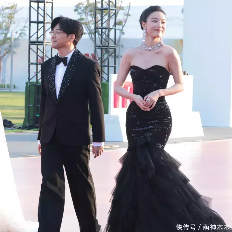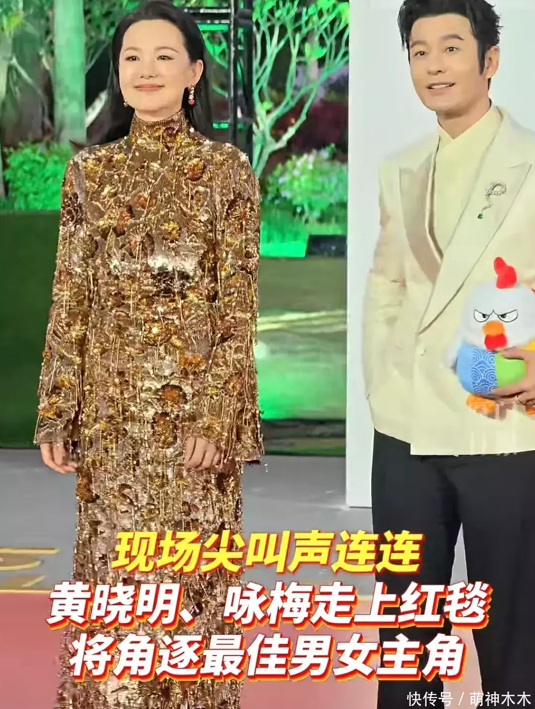 从现场生图看,除了咏梅,剩余几位影后候选人们都很低调啊,咏梅的金色礼服把身旁的黄晓明都衬托成了配角;24岁段奥娟选择了一身黑色短裙,虽然缺少亮点,但符合她的新人资历。