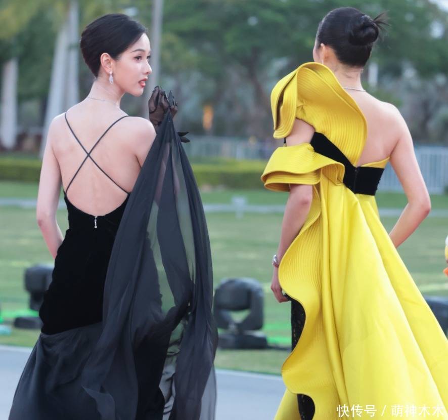 关晓彤亮黄色礼服下暗藏玄机,镂空设计蔓延全身,陈都灵黑色吊带裙乍一看平平无奇,背后另有玄机——只是好难得看到关晓彤的背面啊,怎么有点腰粗背厚的意思?考虑一下练背吧!